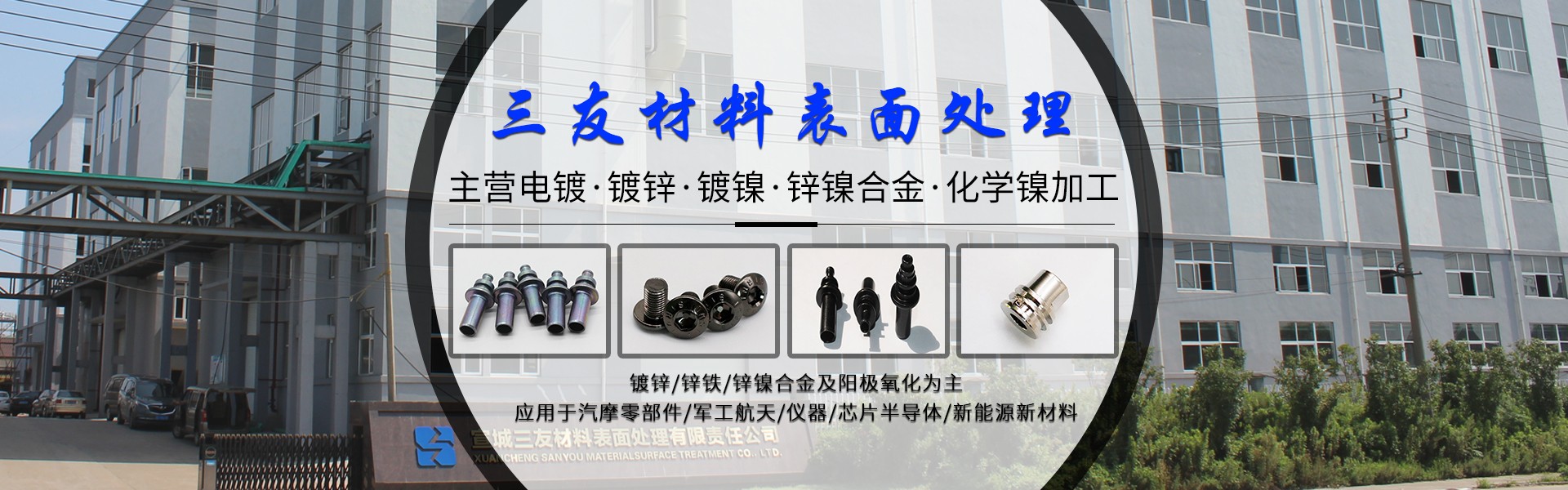 公司產品以鍍鋅及鋅鐵和鋅鎳合金及陽極氧化為主,立足服務于汽摩零部件,軍工航天,儀器,芯片半導體,新能源新材料,衛浴箱包等行業用戶。...